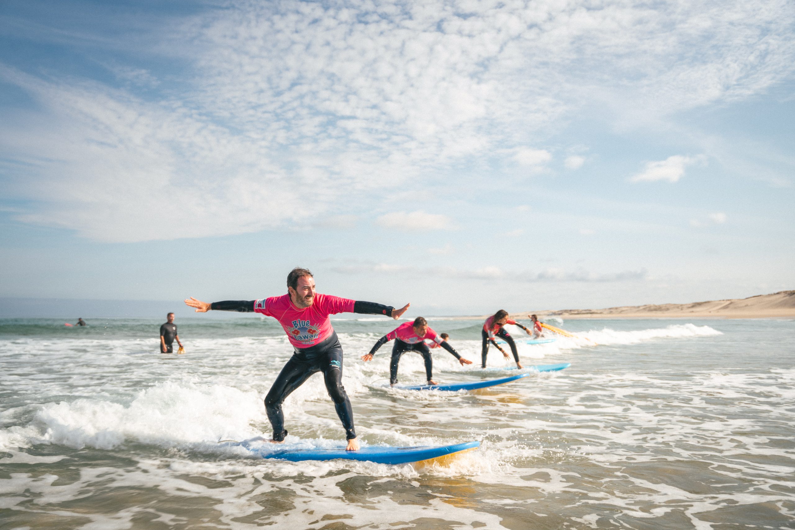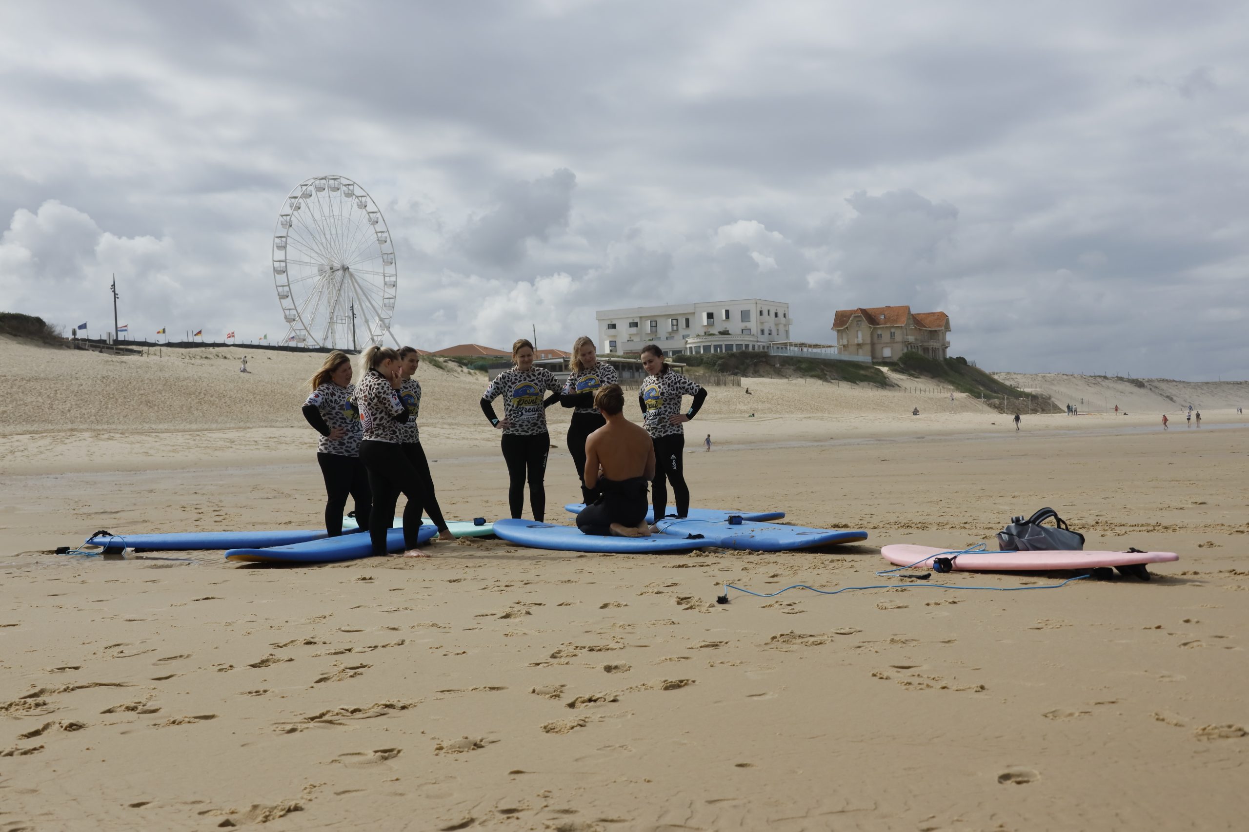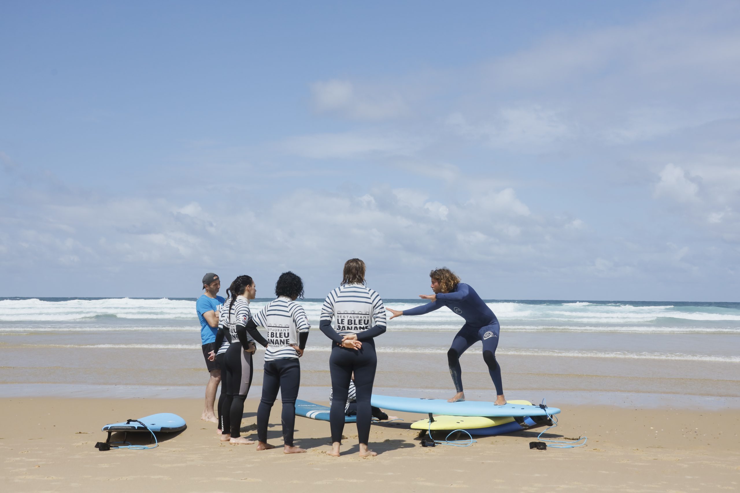 Surfing lessons at Biscarrosse Plage in the Landes